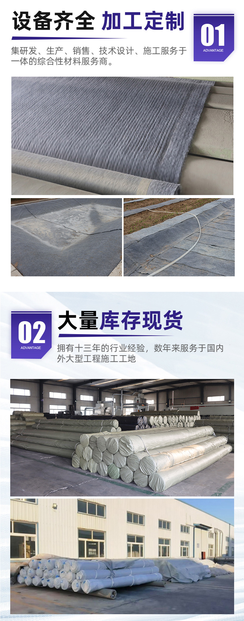 功能:临时住所、水利灌溉、公路铁路防护带等防火防水防渗工程;