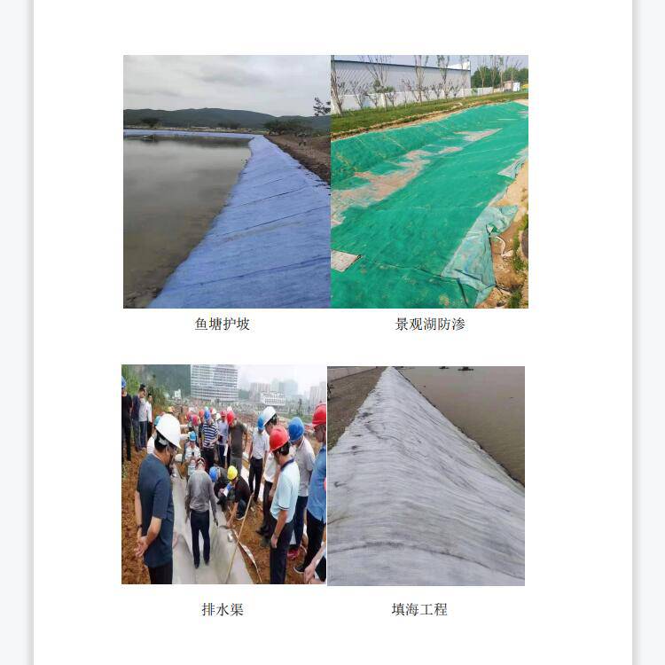 应用领域:水利工程、交通工程、农业养殖工程、环境工程、海洋工 程等。 铺设施工 1,准备工作 首先要规划,测量,一定的坡度,使水流能从上端畅流入下 端;要将施工地清理平整后,按照设计图设置施工线,复测排水 坡度。 2,开挖按照设计要求设置施工线,沟渠两侧需要平整,沟内坡面不得有 虚土和空洞。要求水害部位夯实处理,除尽坡内杂物碎石等,必要时 使用三七灰土夯实处理,或注浆加固后进行封闭,要求处理后的部位 稳定性良好! 3,铺设 材料可纵-横向铺设。请务必将基底整理平整,否则会影响外观质量! 12 小时后再次均匀淋水进行养 护,周期三天。